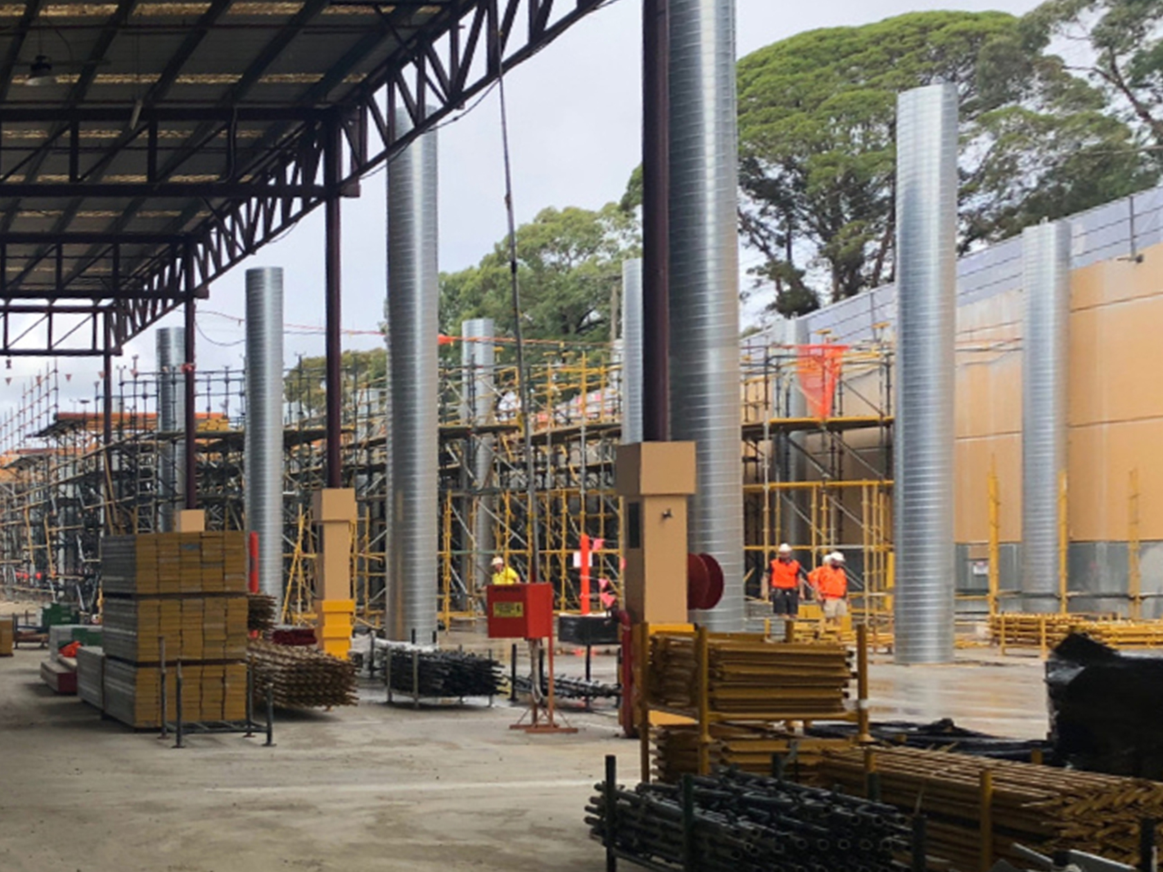 The standout feature and what will be a new and diverse point of difference for the Croydon community is the outdoor undercover shipping container dining and entertainment precinct. Its portal frame is being wrapped in a timber-look aluminium batten system with sections of Colorbond custom orb cladding closing out sections while leaving other areas open to allow customers to see exciting hints of what’s happening inside. This detail maximises the activation while creating an intimate space for people to gather and enjoy themselves.