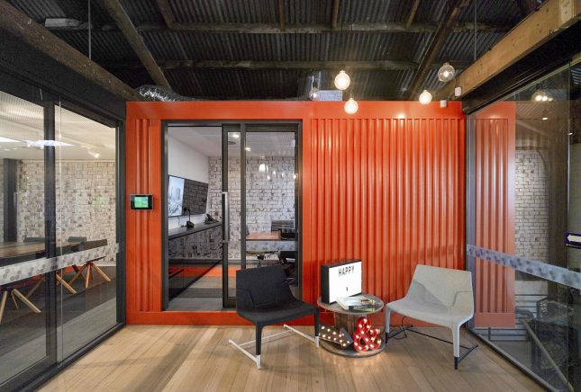 Want to visit us? The door is always open! We can see you in our bright orange shipping container (aptly named ‘The Container’) that houses a meeting room equipped with the latest and greatest conferencing tech, or the ‘The Long Room’, our large boardroom with a handy large expanse of magnetic whiteboard – perfect for our no-holds-barred Friday morning Design Sessions! If you’re after something a little more low key we’ve got the sun-drenched mezzanine; pull up a repurposed beer keg and sit around our upcycled hot pink table with us. And if you hang around long enough we can sneak downstairs and pour a few cold ones from our in-house beer tap, we’ve even got a handy little courtyard beer garden nearby!