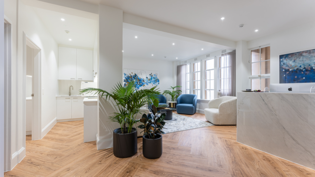 Being a health practice, there was a requirement for a higher level of anti-bacterial flooring, and the team was challenged to specify a new flooring finish that could be placed over the existing heritage flooring without damaging it. As a result, an anti-bacterial vinyl plank with underlay was specified.