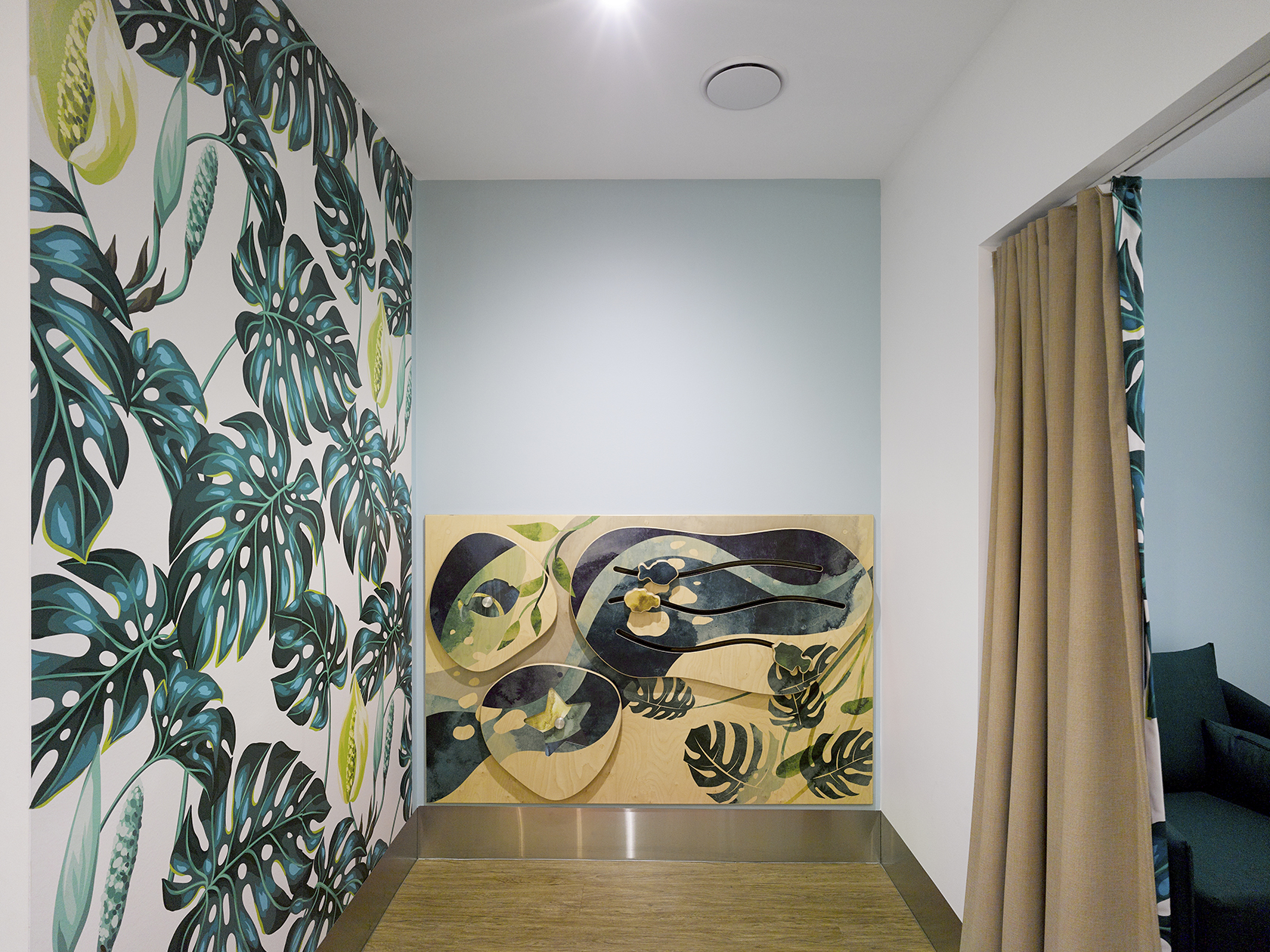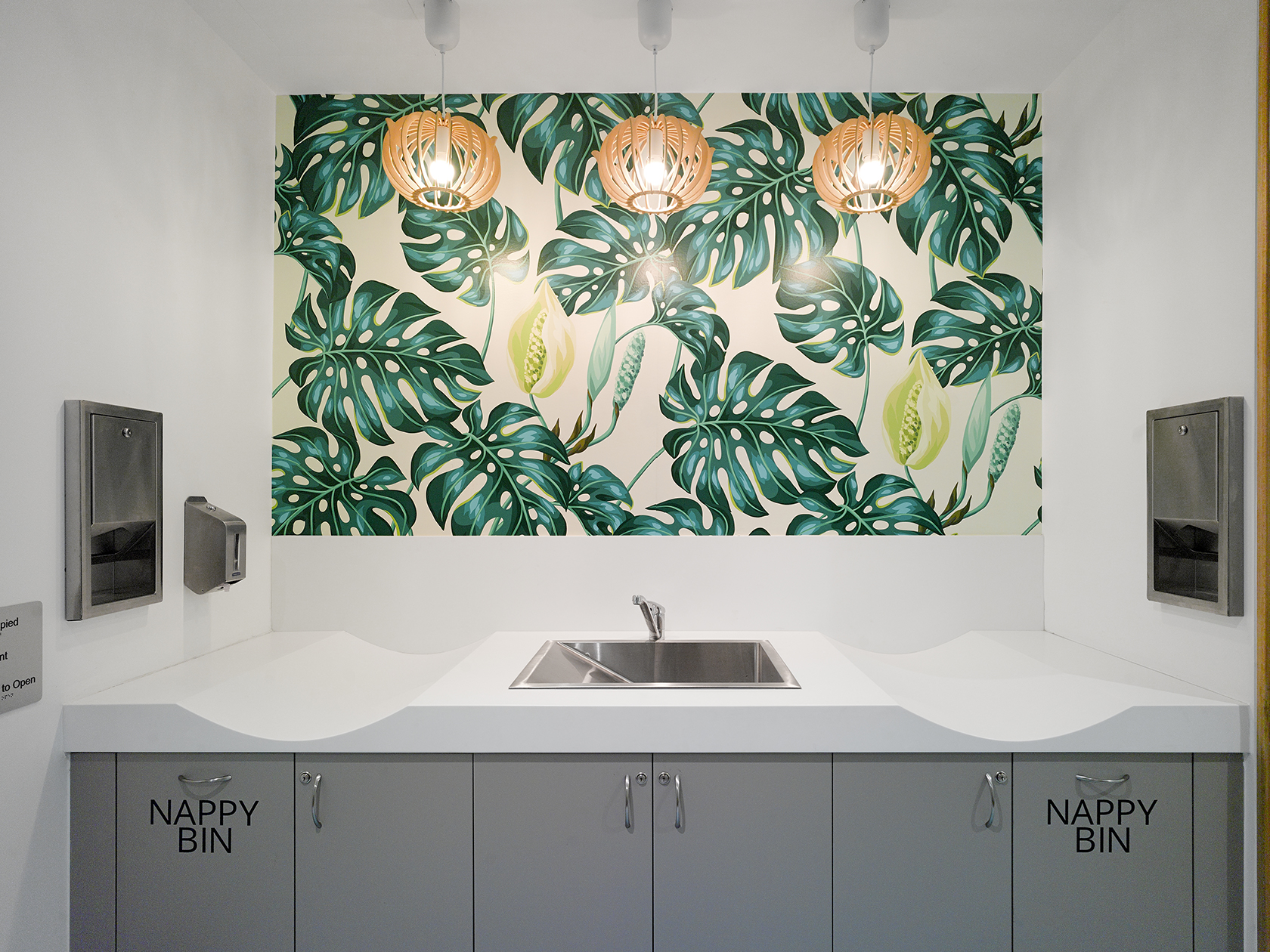 The centre, although a bit tired and home to a couple of design challenges, held so much potential. Immediately inspired by the local surroundings and context we set about the redesign of the amenities. Maroubra Pacific Square sits in Sydney’s eastern suburbs with its own beautiful beachfront which locals love to surf, run along or laze on a sunny Saturday afternoon. We knew we needed to celebrate this and use it to enhance the customer experience as well as creating a sense of place within the design. Using our client’s style guidelines, we created the base palette to tie the centre in with Charter Hall’s portfolio. Whilst focussing on customising the features and focal points of the design to allow the amenities to stand out from the rest.