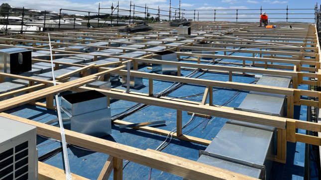 Looking for a May completion, the internal fit out of the first floor offices is well underway. The mass timber when finished will be a striking feature and will give warmth to the office fit out for the clients.