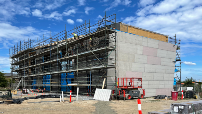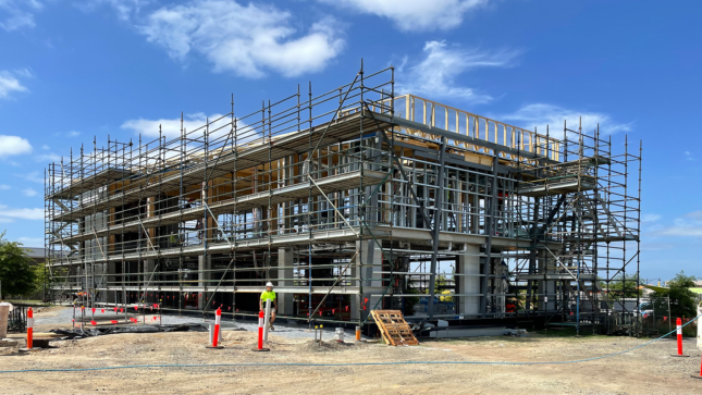 Installation of the mass timber with the CLT and Glulam beams are now complete with the building looking towards becoming watertight. Much of the external cladding and brickwork has been installed as well as the roof. The glazing is being installed in the coming weeks.