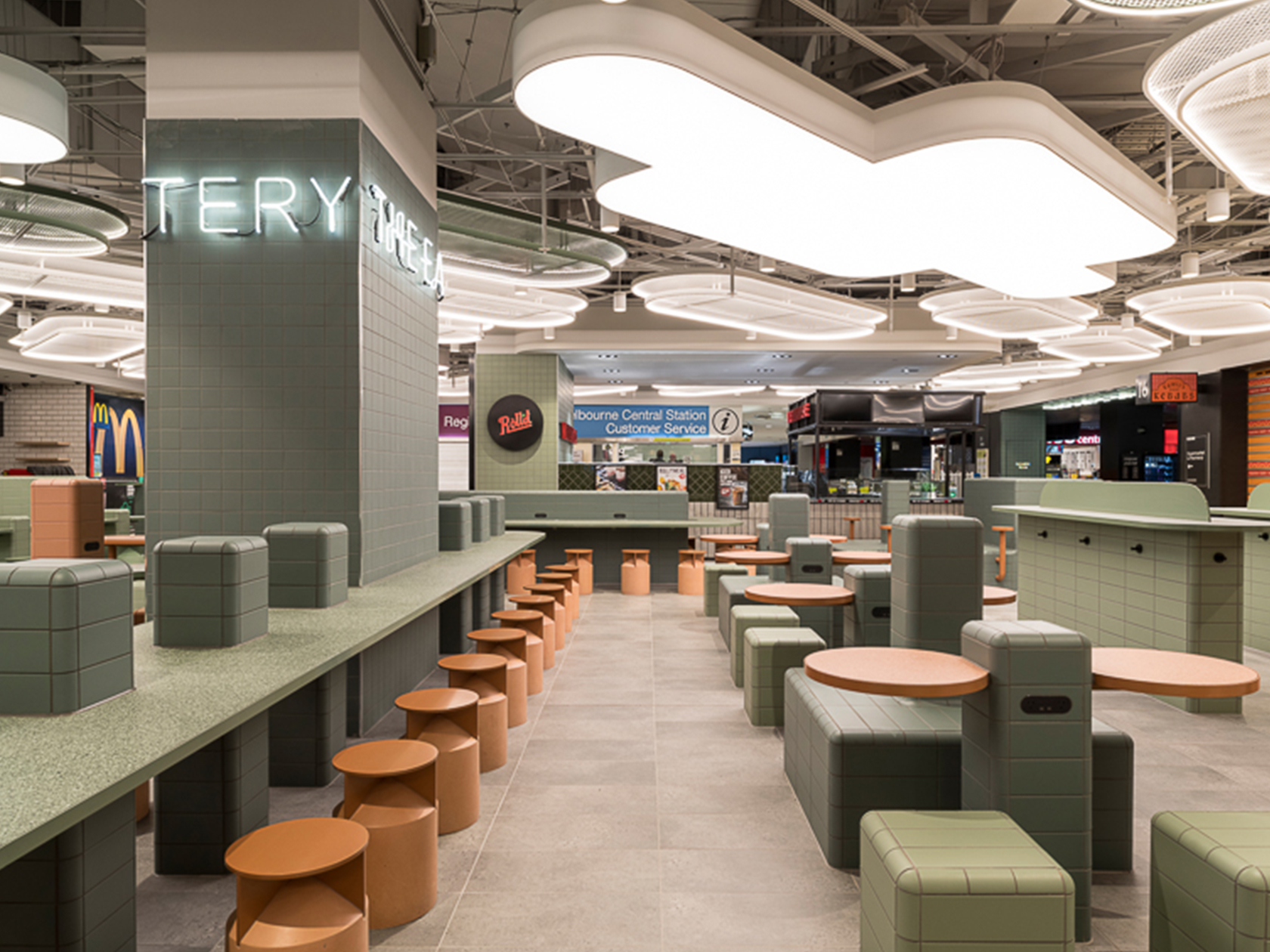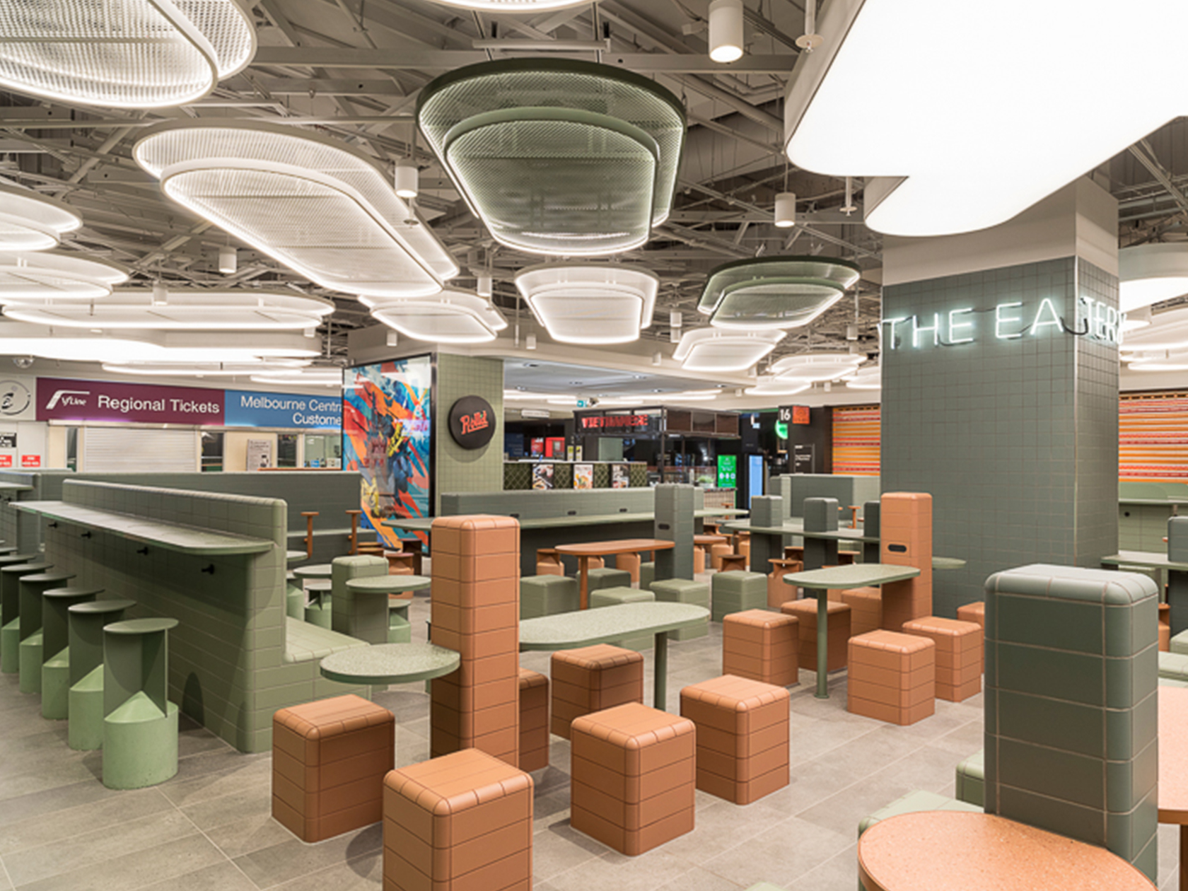 GPT Group’s $2M refurbishment of The Eatery’ at Melbourne Central has been completed. Key features include a new precinct flooring and a feature ceiling, new joinery which doubles the usage capacity and an overlay of contemporary lighting to brighten the public realm.