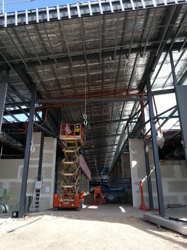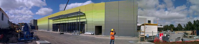Roxburgh Park Shopping Centre Client: Colonial First State Builder: ProBuild The project is now flying along as we rapidly approach completion. The ‘golf ball wall’ is almost finished and the timber cladding is looking great. Previous Next