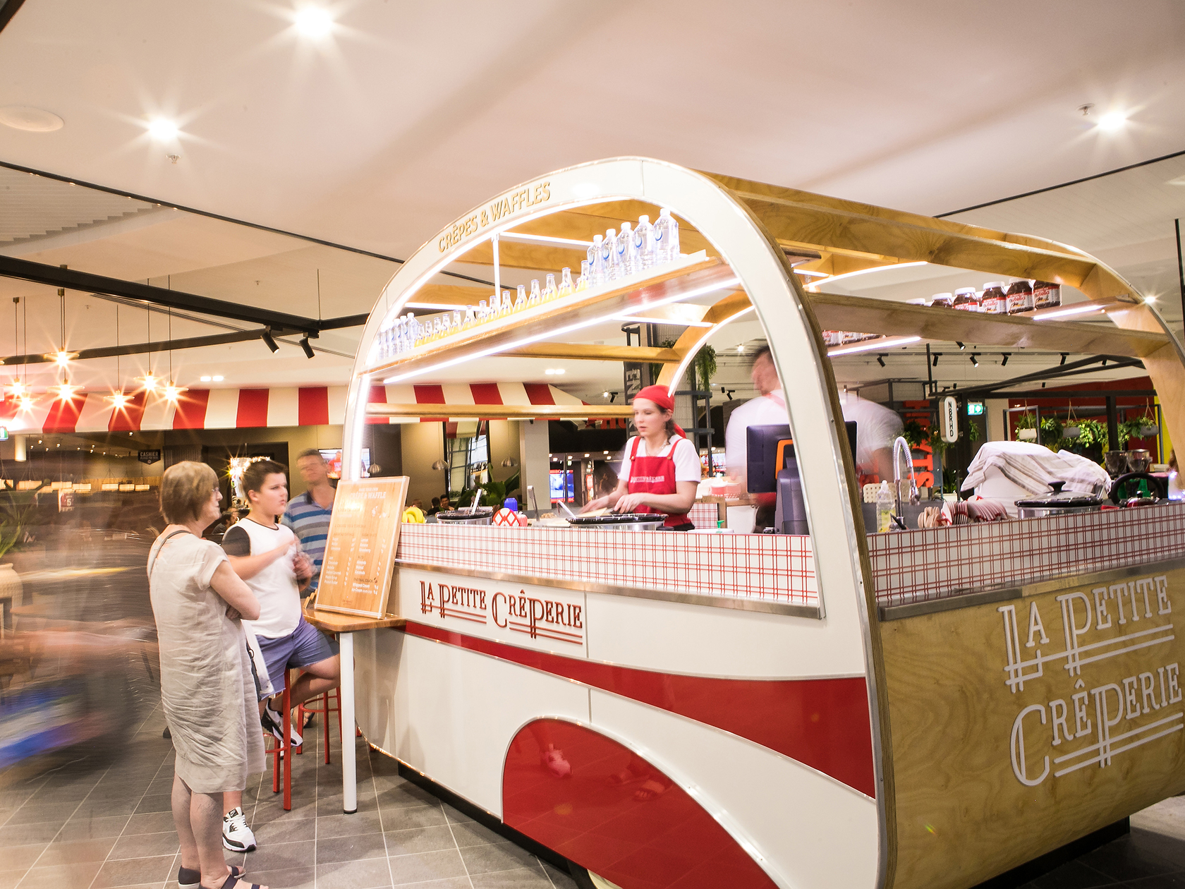 The design and layout of the dining precinct is a fresh take on a piazza style setting. The existing typical shopfront was changed to enable the tenancy arrangement to extend into the mall area, making use of valuable retail space and enhancing the offering to customers.