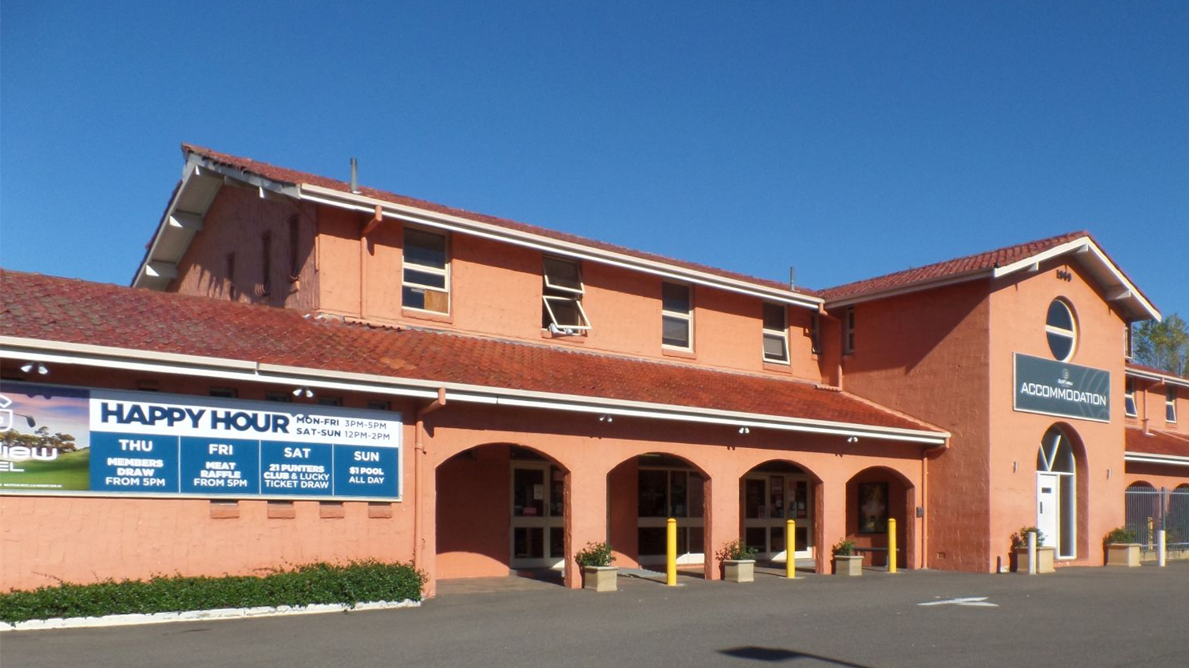 Taking an existing hotel from the late 60s, heavily rendered paint finish with arches and tiled roofs and trying to marry in with a new, modern branded liquor store needed a design strategy which allowed the amalgamation to work operationally as well as aesthetically.