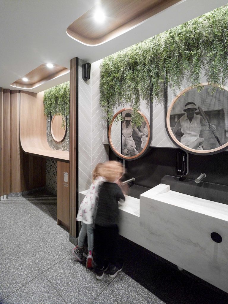 The amenities vary in size and layout on each level, so they would all come with their own advantages and challenges. Ultimately the goal was to have the design be consistent throughout the whole centre with a few special features in the large hero blocks.