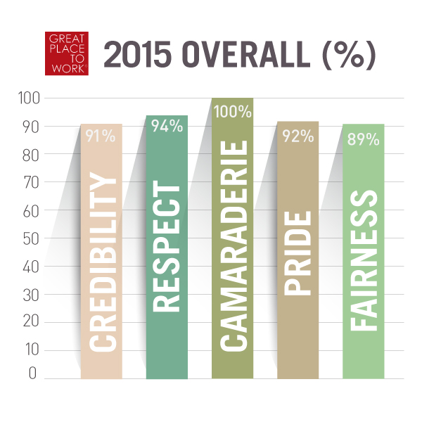 Several years ago the i2C Team was instrumental in developing seven Point of Culture and they exist as a constant reminder for our goals and working life. So it was validation for Brian and Anthony when reviewing our 2015 results across the five dimensions of the Great Places to Work Trust Index©Survey – credibility, respect, fairness, pride and camaraderie.